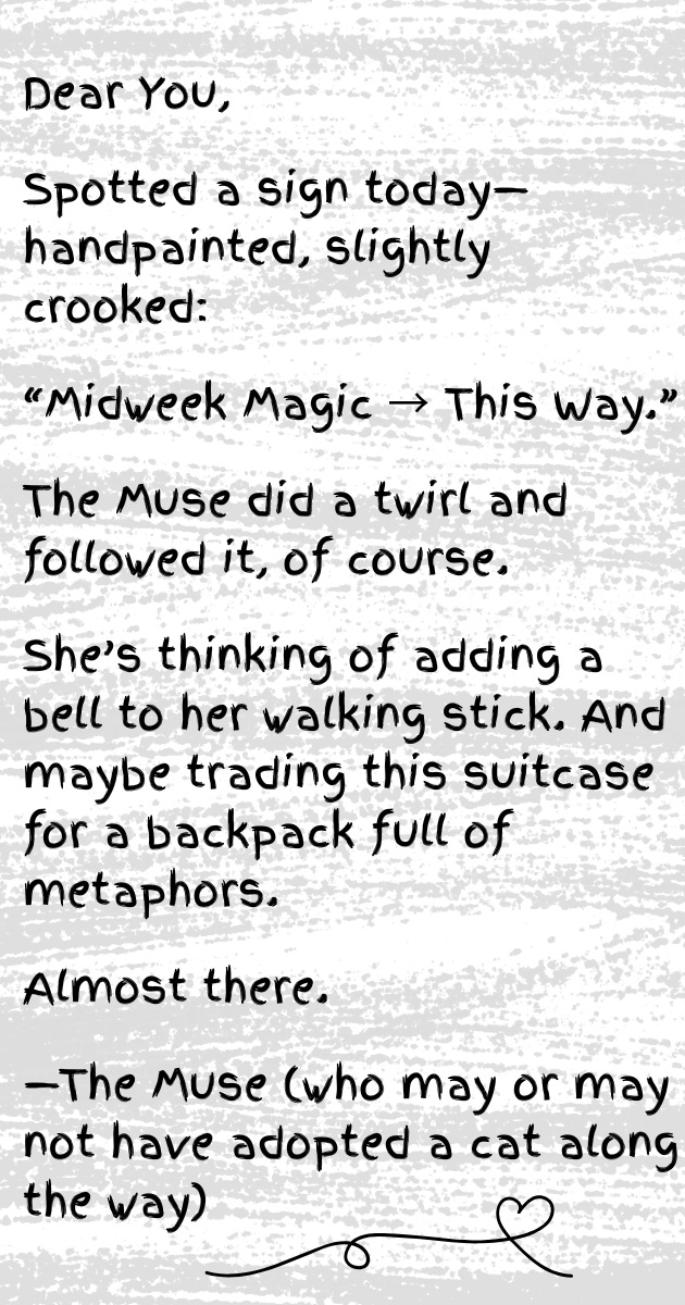 Tuesday’s CrossroadsMuse Finds (?) Cat on the RoadJL TookerJun 17, 202512ShareSubscriptions are free. And each ♥️ adds a sparkle to the next edition. And comments? That’s how I know the Muse wasn’t just whispering to herself.SubscribeLeave a commentPreviousNext