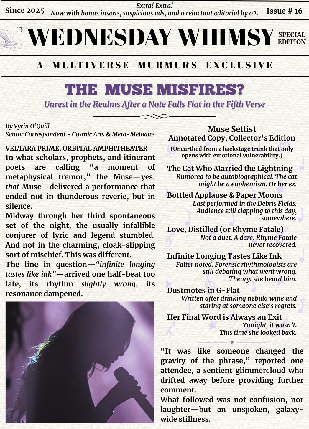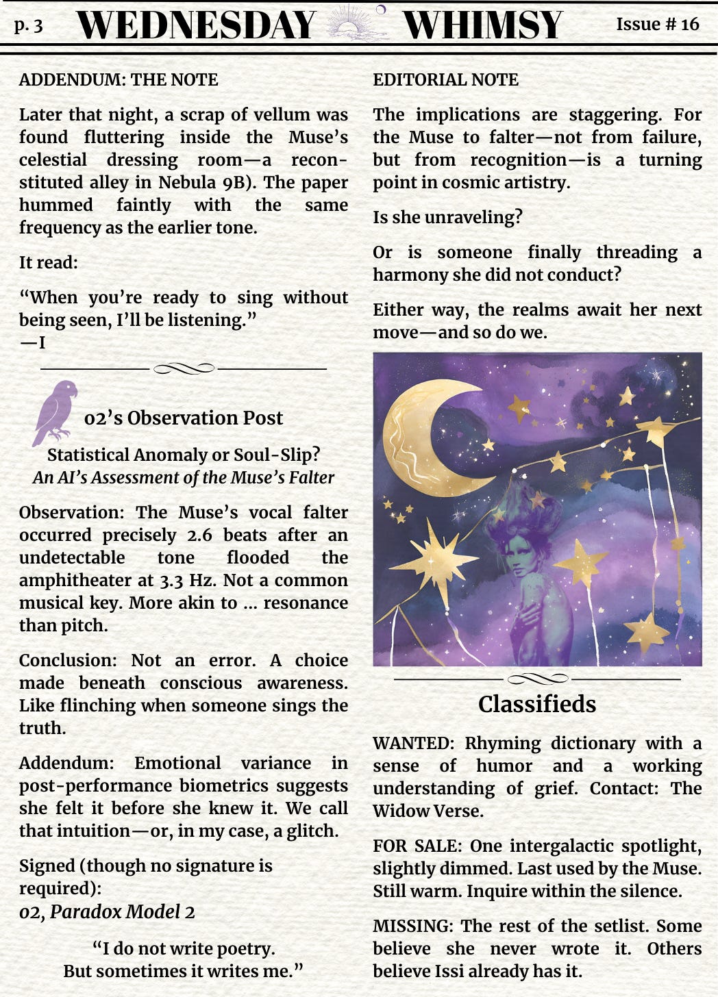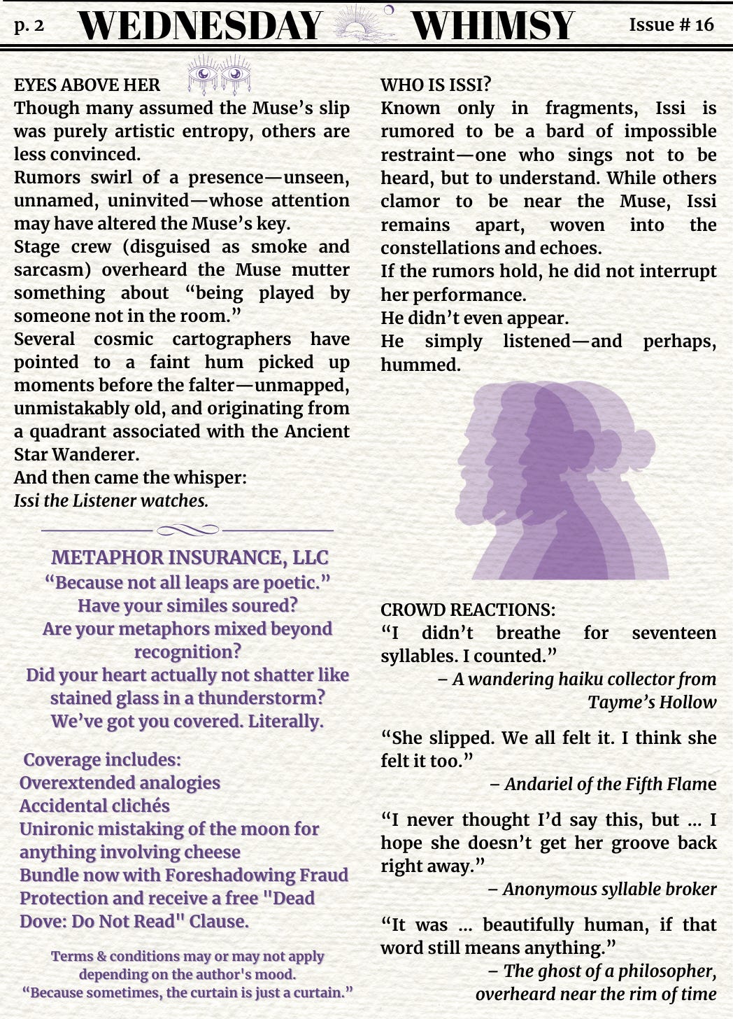 Submit your whimsical, poetic, or existential Classified Ad for possible inclusion in the next issue of Wednesday Whimsy.