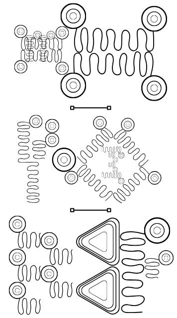 Beyond the basic shapes, each threl differs in its base rhythm, semantic field, and color. Further, these three features change based on orientation (e.g., vertical, horizontal, diagonal, etc.), insertion or stacking with other threls, and mood or intention.