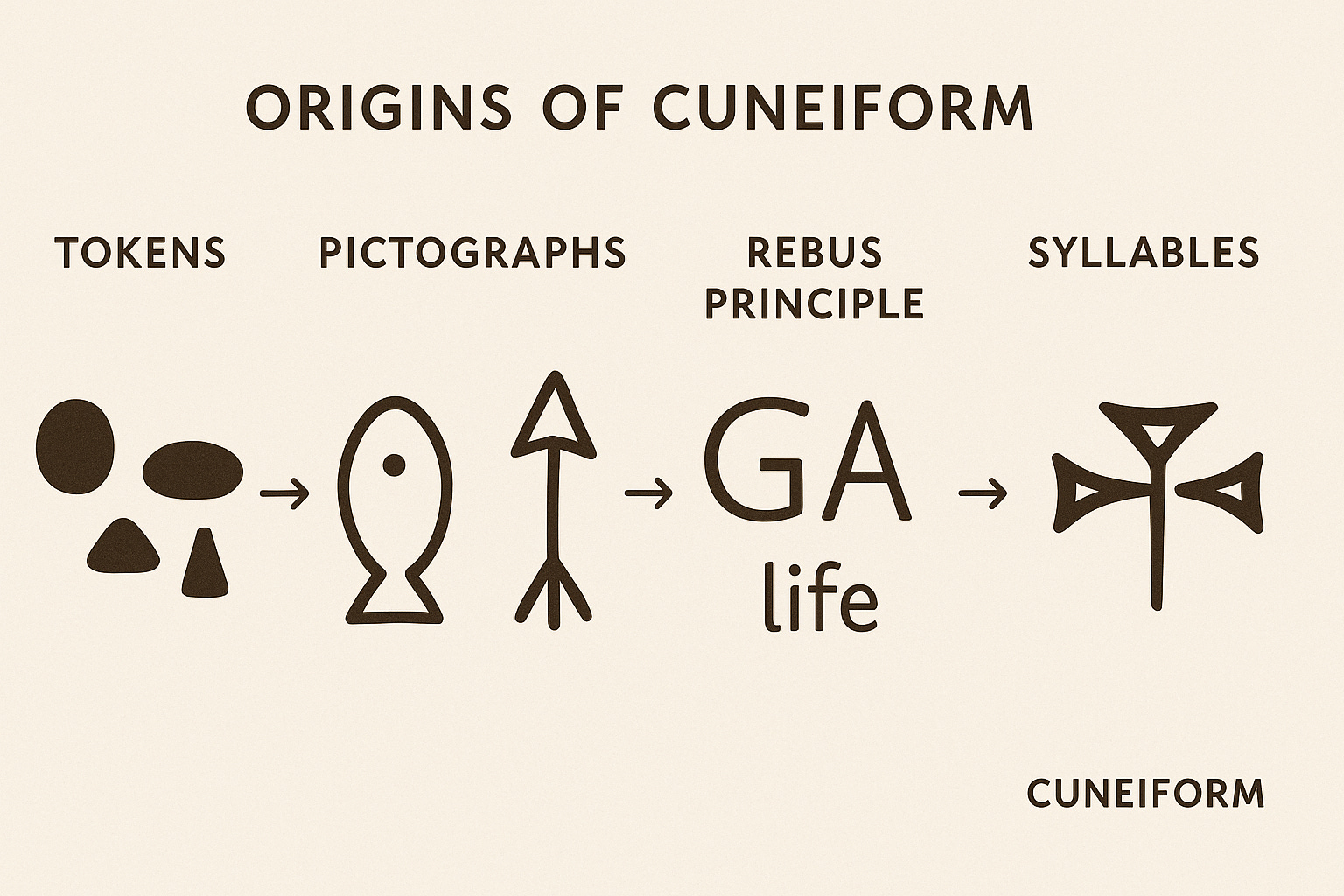 Once sound values entered the system, scribes combined them to spell out names, abstract ideas, and grammatical markers. Cuneiform signs began representing syllables (ba, ki, mu) rather than just whole words.